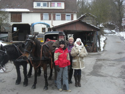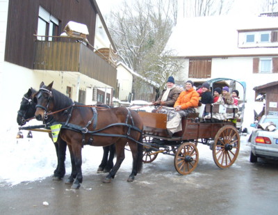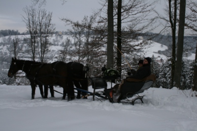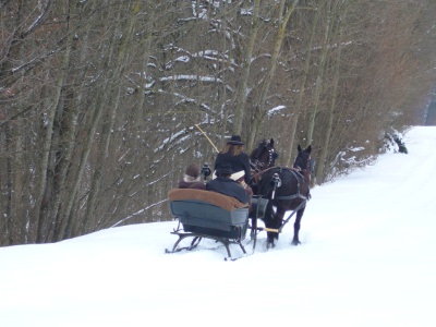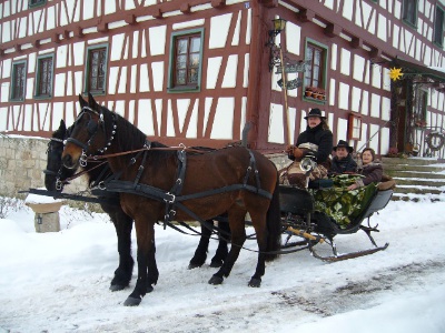 Wir freuen uns Ihnen auch Fahrten im historischen Jagdschlitten anbieten zu können.