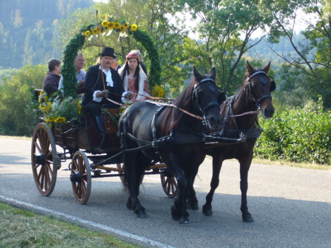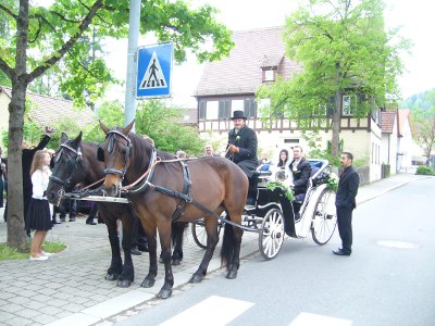 Und es gibt nichts schöneres, als in einem sauber herausgebrachtem, geschmückten Gespann, von der Braut aus zur Kirche oder zum Standesamt und anschließend zur Hochzeitsfeier zu fahren.