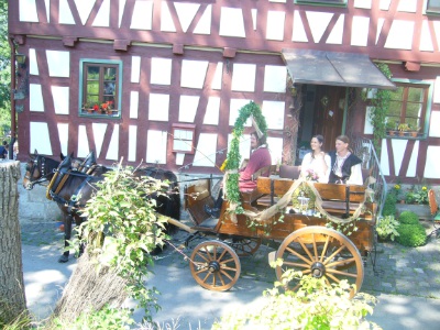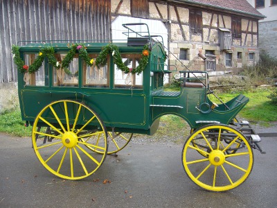 sowie mit dem Pferdeomnibus Ihre Hochzeit zu fahren, wo die Trauzeugen und Blumenkinder gleich mitfahren können