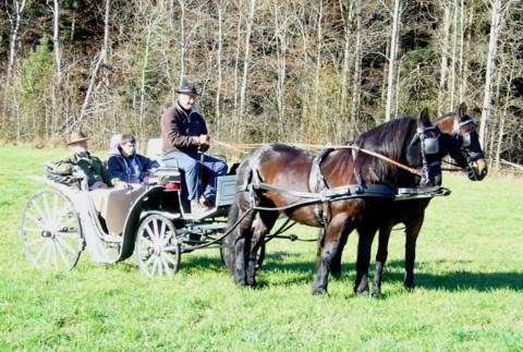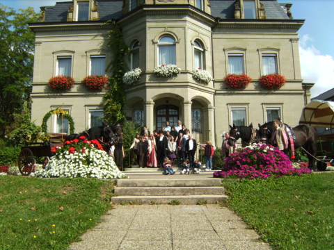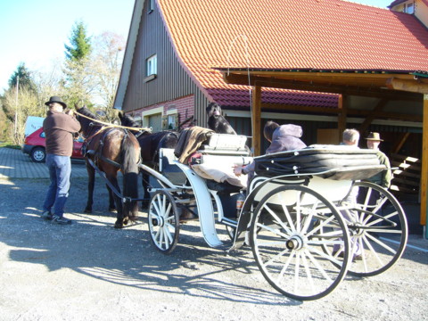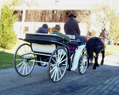 Wir sind mit dem Auto und Pferdeanhänger hin und haben die Hochzeitskutsche eingespannt und heimgefahren.