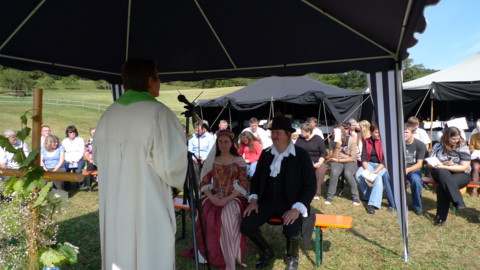 Unter freiem Himmel wurden wir vor 70 Leuten von der Pfarrerin getraut.