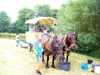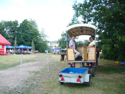 Am 17-18.07.2010 haben wir die zwei Festplätze mit unserem Planwagen verbunden und fuhren ergänzend zum Floß. Als Chattel zwischen den beiden Floßanlegestellen.